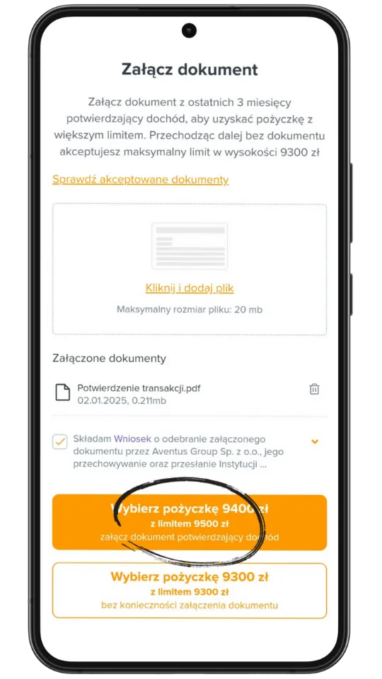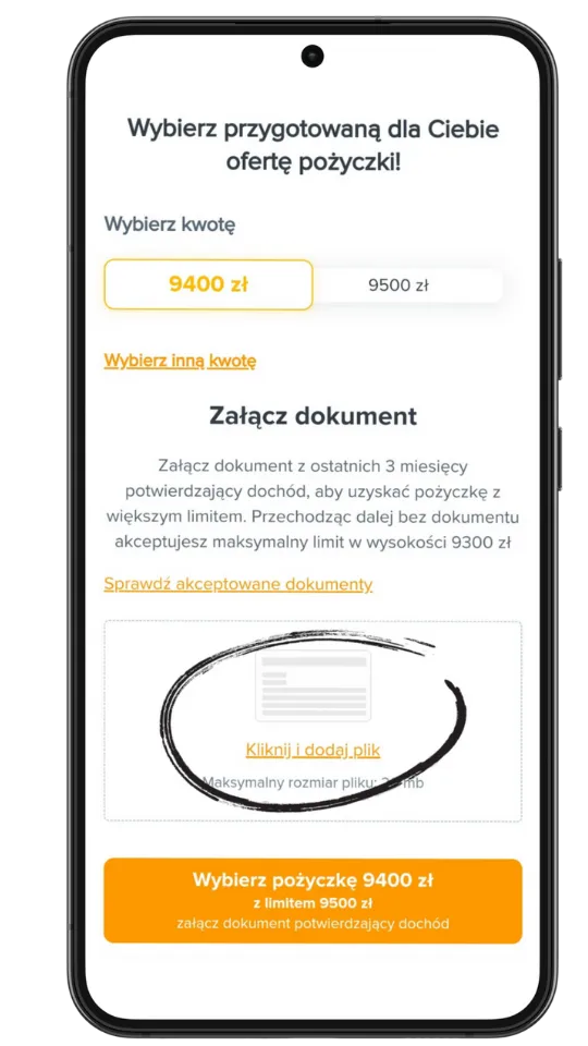 Wnioskując o wyższe kwoty pożyczek, możesz spotkać się z prośbą o załączenie dokumentu potwierdzającego Twój dochód. Rozumiemy, że nowa procedura może powodować pewne trudności, dlatego przygotowaliśmy szczegółową instrukcję, która krok po kroku wyjaśnia proces dodawania dokumentów zarówno na Twoim telefonie, jak i komputerze.